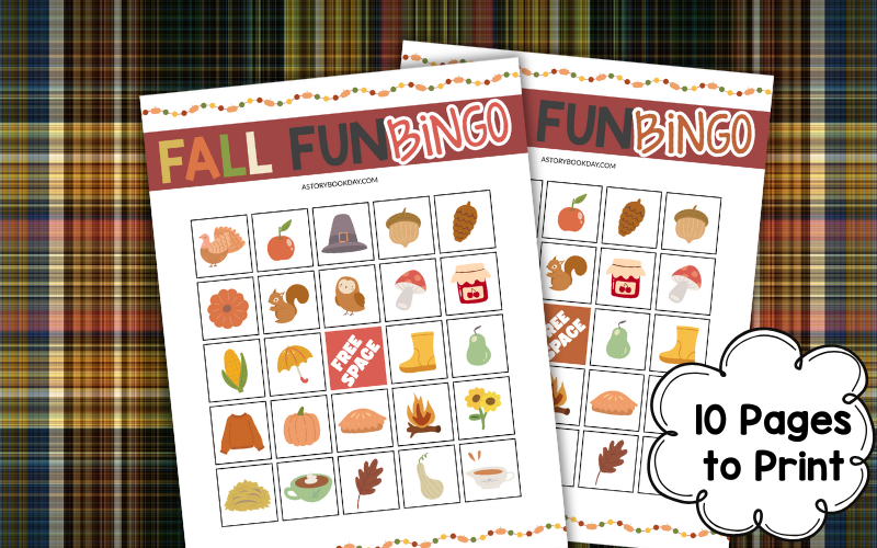 Each card in the set includes the same fall-themed images, but they’re arranged in different orders so everyone’s card is unique. That way, multiple people can play together and each round feels a little different.